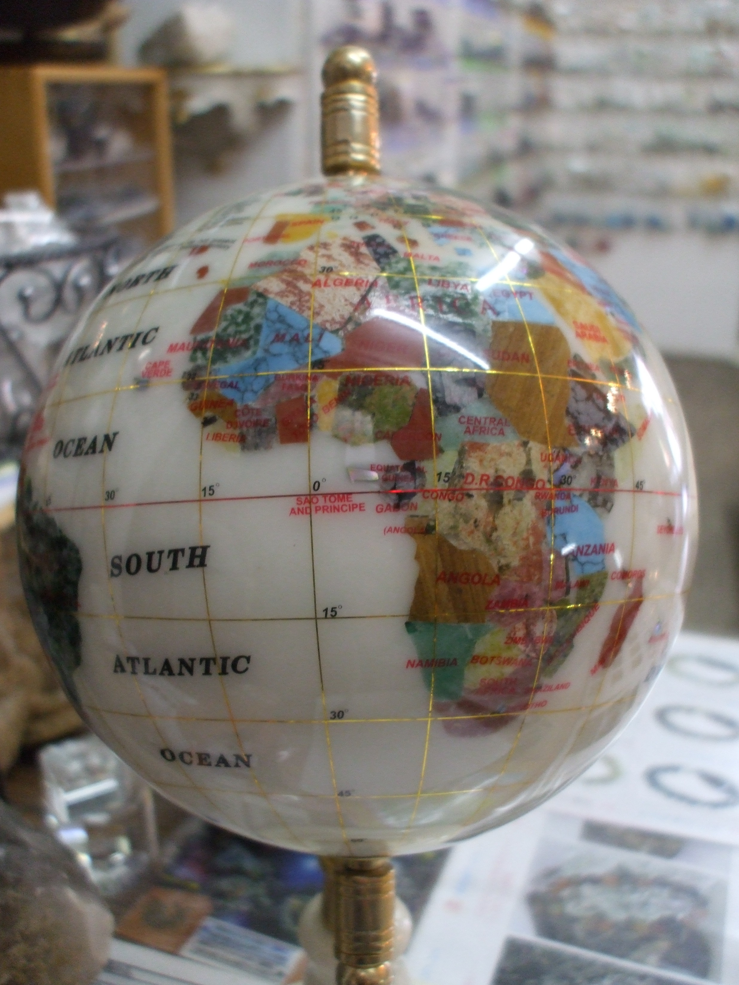 なんと、パワーストーンをゼイタクに使い、石で出来ている地球儀なんです。