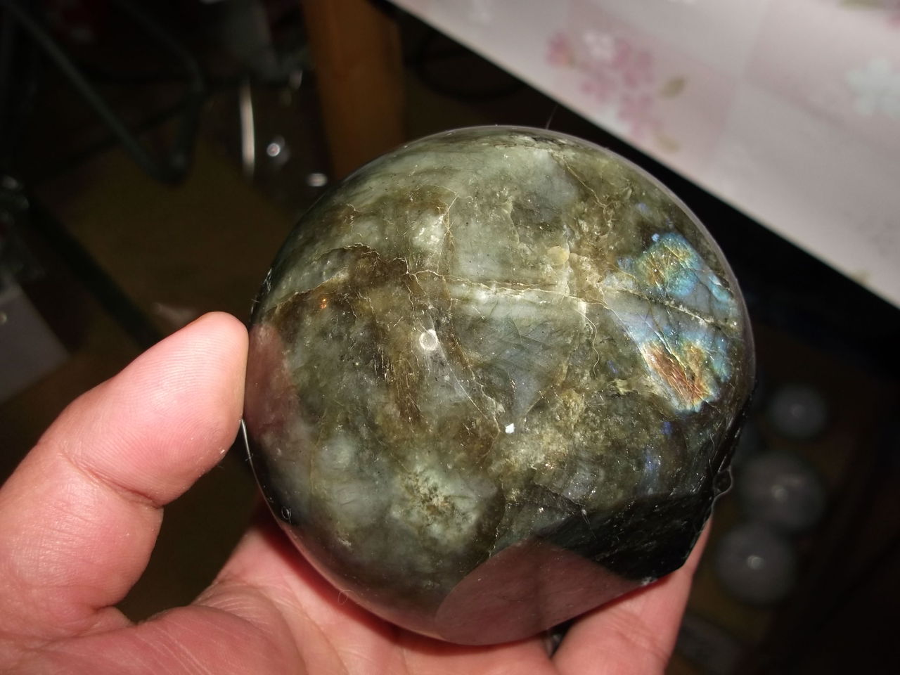 ラブラドライトの多面カット丸珠も