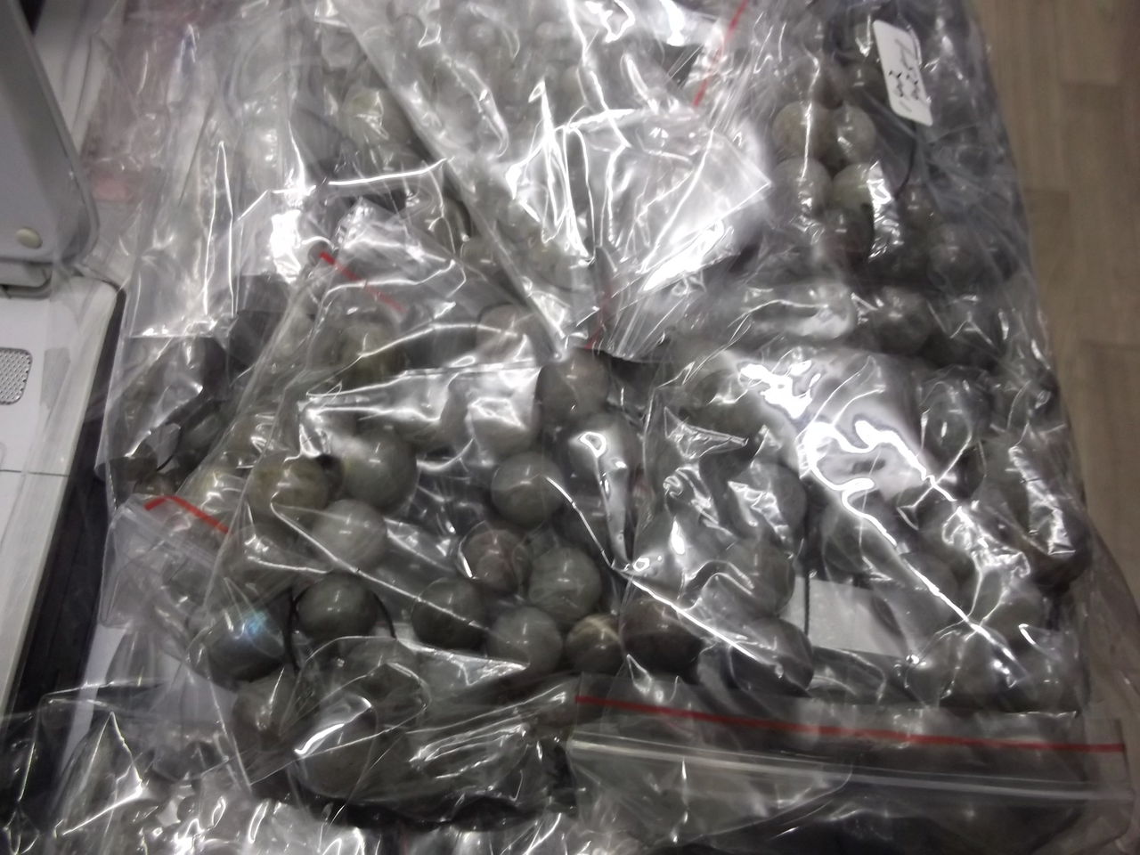 こちらは本日入荷したラブラドライトのビーズです。