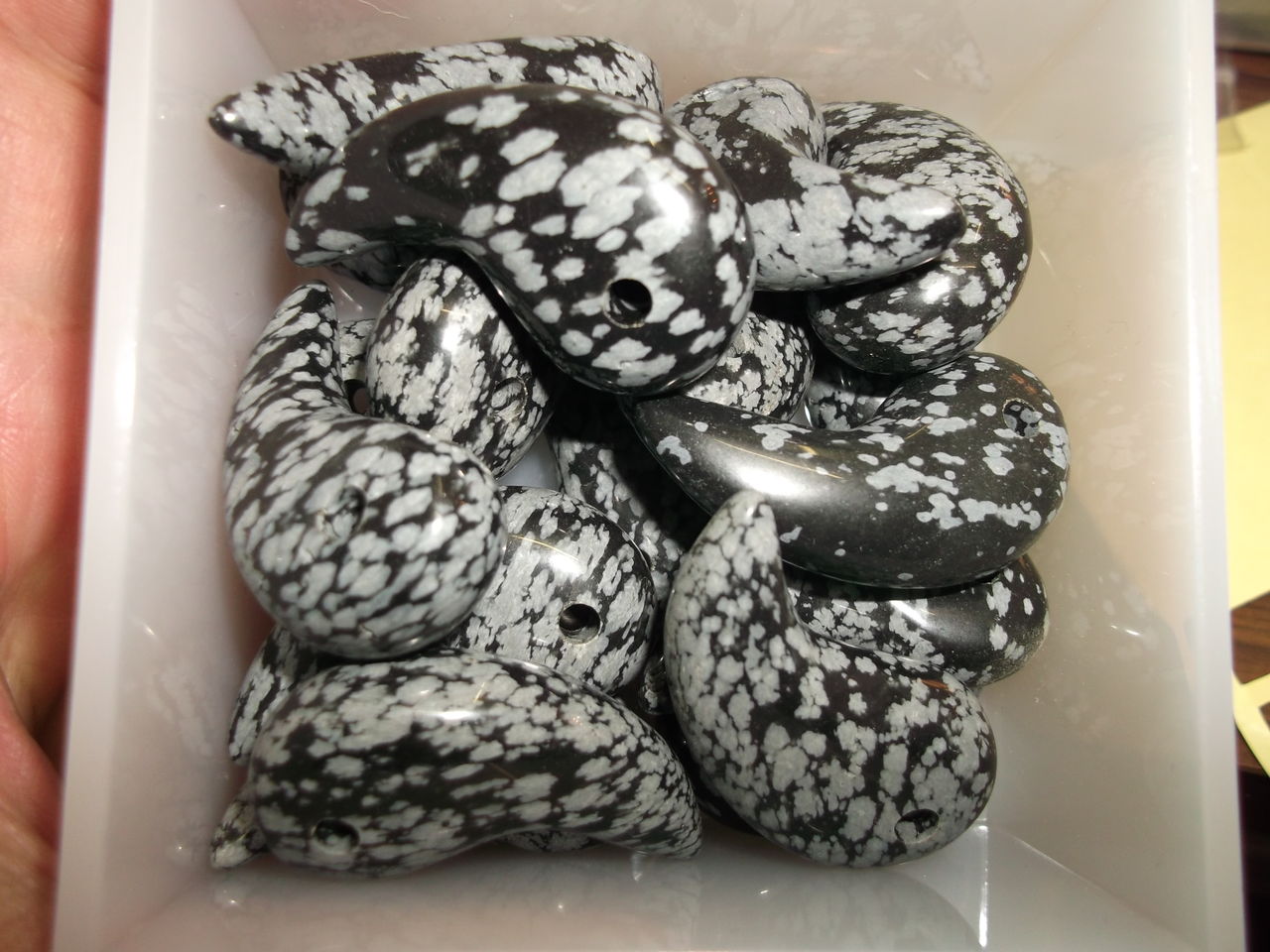 スノーフレークオブシディアン35mm勾玉です。