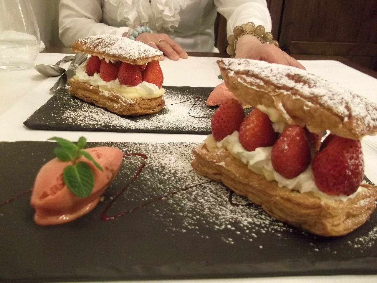 イチゴのソルベにミルフィーユパイ。