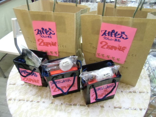 今年は原石・丸珠などの原石福袋(一万円)とブレスレット・原石のブレスレット福袋(一万円)と