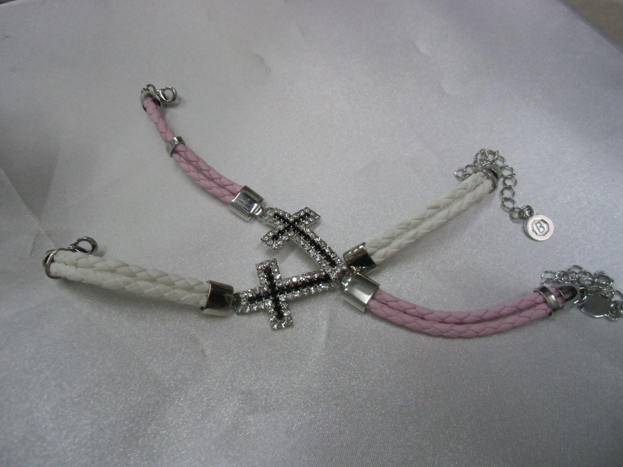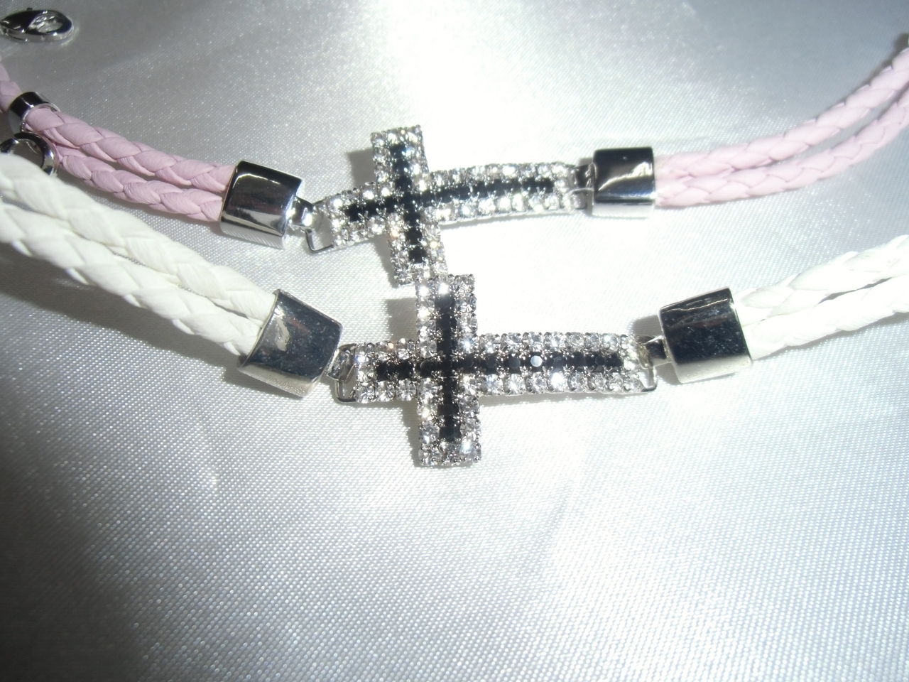 中央部クロスは二色のラインストーンを配し