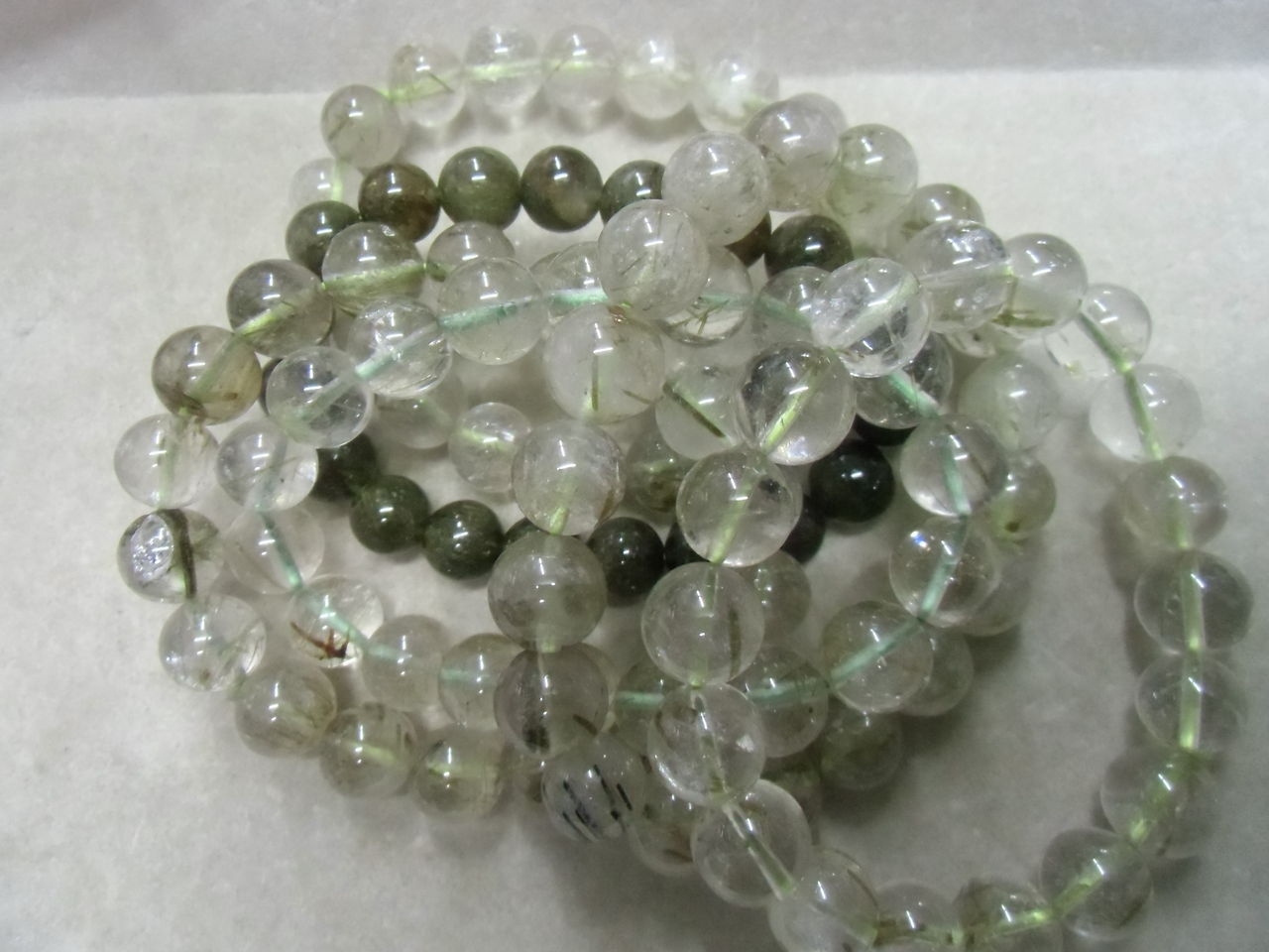 こちらは大量に到着したばかりのオウロベルデクォーツブレスレットです。