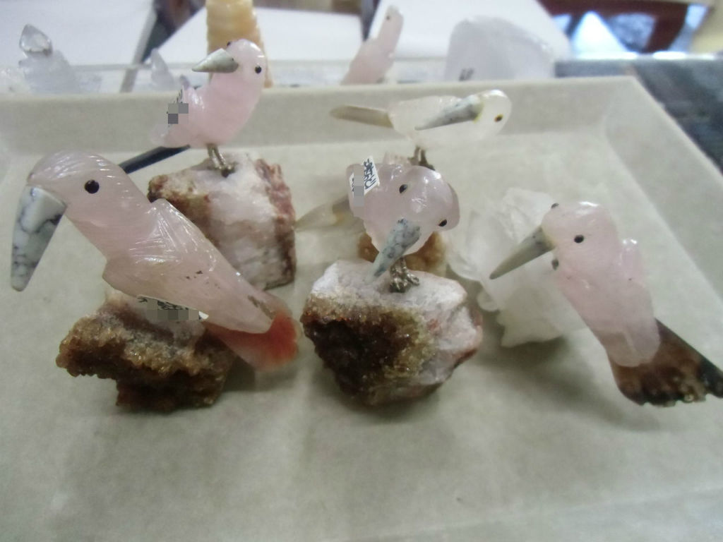 鳥さんたちの止まり木になっているのは天然石の原石!