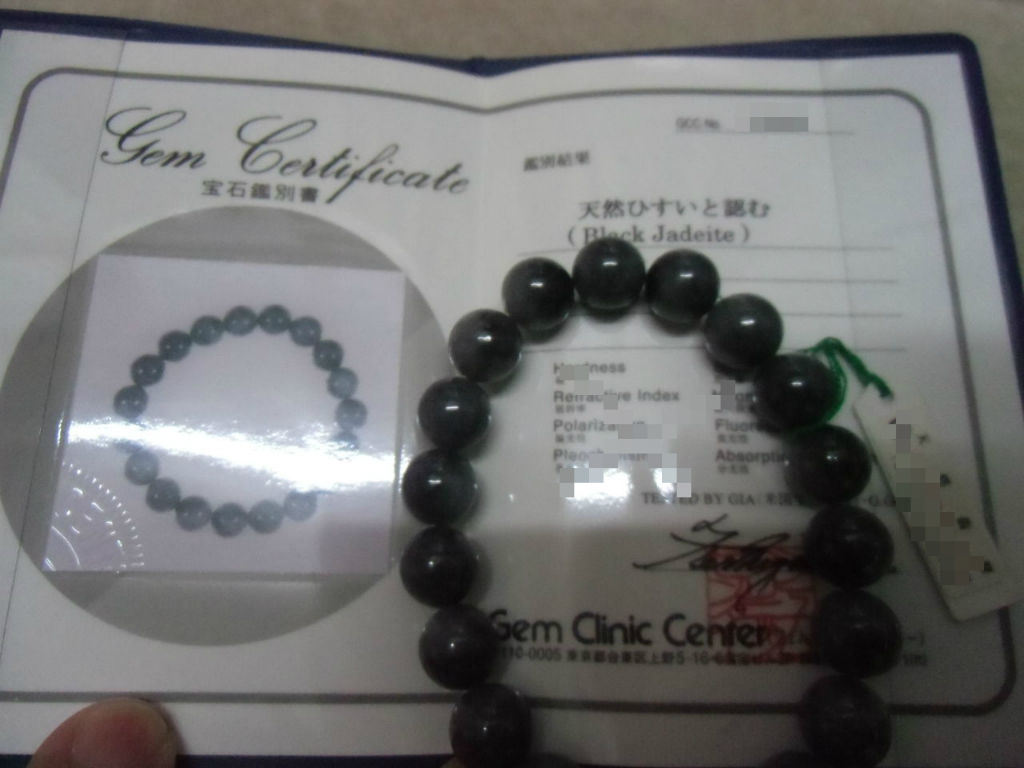 そして珍しい黒翡翠の鑑別書付きのブレスレット!