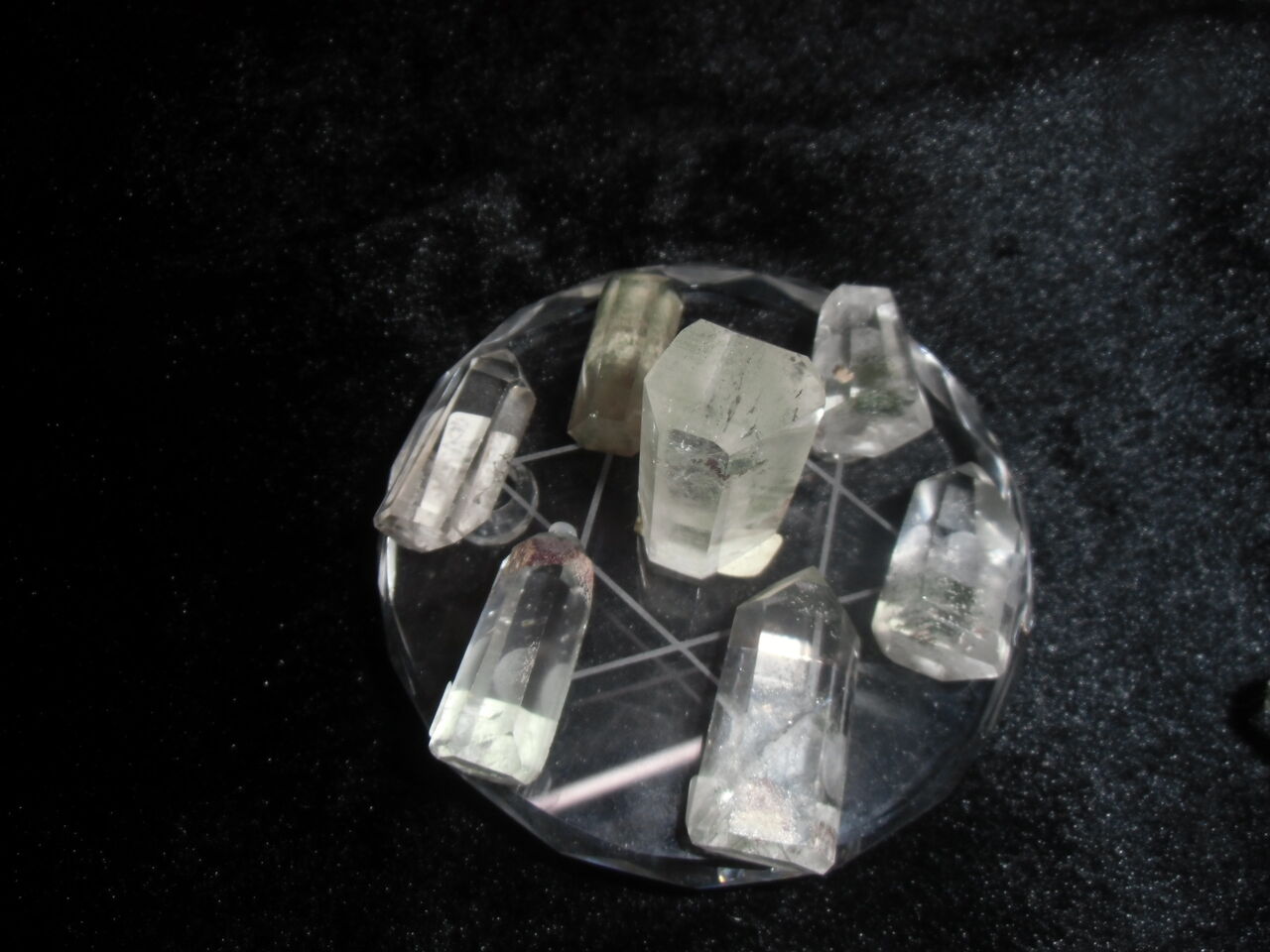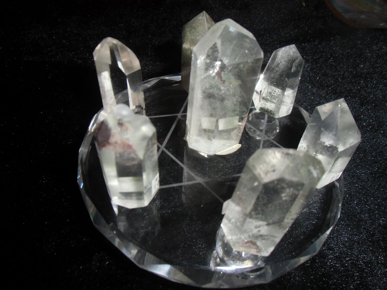 周囲6本の水晶柱のエネルギーを中央の大きな水晶に集中させて大きなパワーを生み出す方法です。