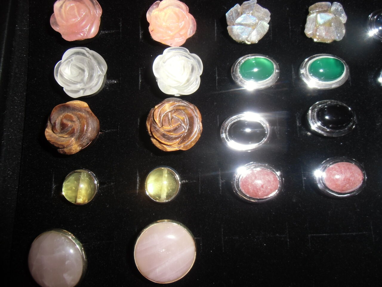 天然石薔薇彫刻のカフスボタン(水晶・タイガーアイ)や