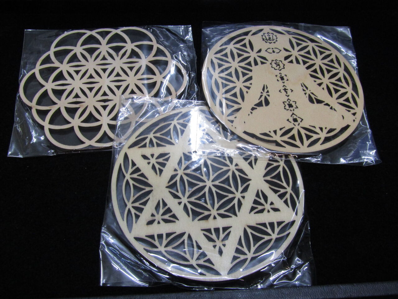 クリスタルグリッドも入荷しております。木製のコースター状平板で
